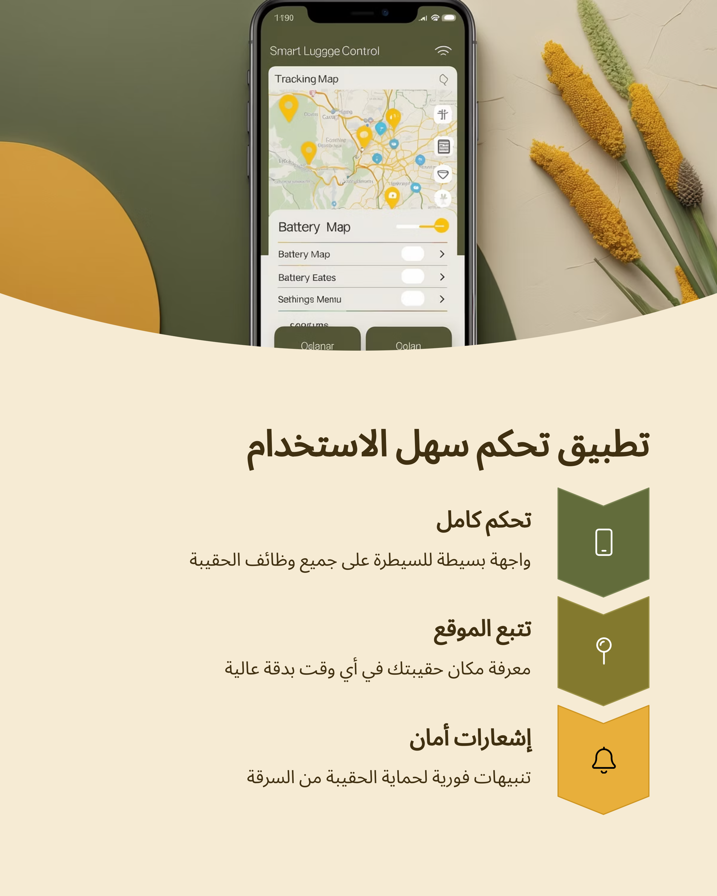 واجهة تطبيق الهاتف الذكي للتحكم في الحقيبة